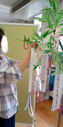あいにくの雨の日ですが、皆さんずぶ濡れになりながらも元気に通所されました。午前は「社会と私」で世界の民族衣装や梅雨に関することをクイズ形式で学び、午後は「MojiMojiする?」で、広報おおつをお手本にして、防災に関する記事を書き写されました。