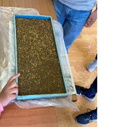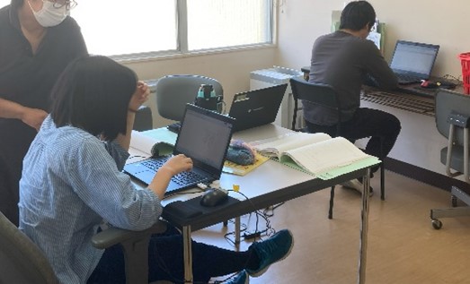 連休中、支援員の自宅で見守っていた種もみから、可愛い芽が出てきました。