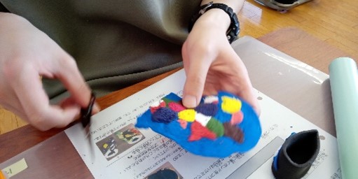 午後は、粘土でコーヒーカップ型の小物入れを作りました。